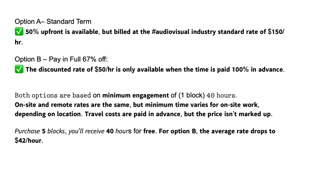 Engineering, Programming & Content Creation — Here’s the Price List.